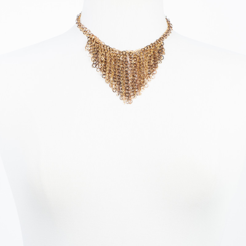 Description Sterling silver 14 karat rose gold 14 karat yellow gold 14 karat coco gold One of a kind Approximately 17 inches 2 1/5 inch drop center Additional Details SKU: CH-FR UPC: