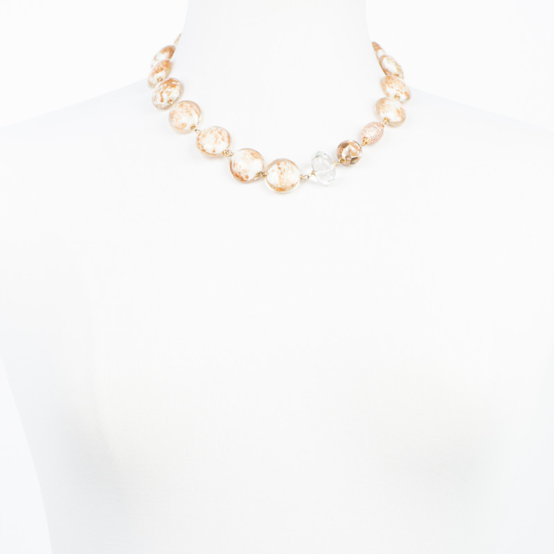 Description Murano glass from Italy with gold specks Mother of pearl faceted clear quartz Cubic zirconia accent 14 karat gold filled 19 3/4 inches Additional Details SKU: CH-MUR UPC: