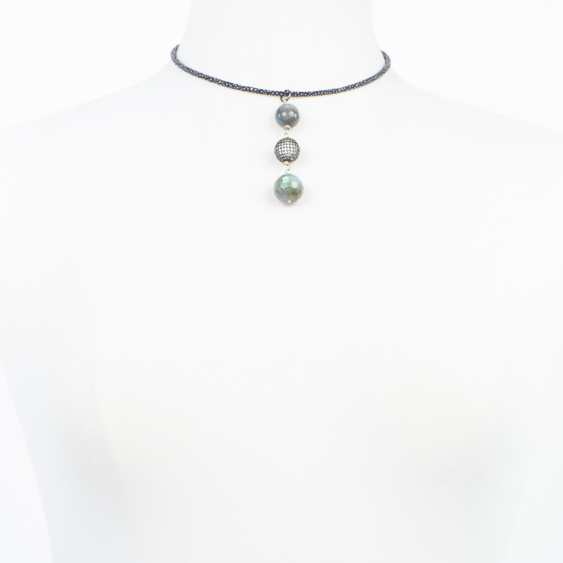 Description Labradorite with cubic zirconia oxidized sterling silver accent Stingray choker 16 inches with 2 1/2 inch pendant Additional Details SKU: CH-TDL UPC: