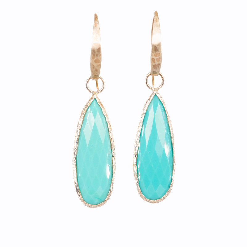 Description Faceted turquoise Sterling silver hammered wire 1.75 inch drop Additional Details SKU: E-TR UPC: